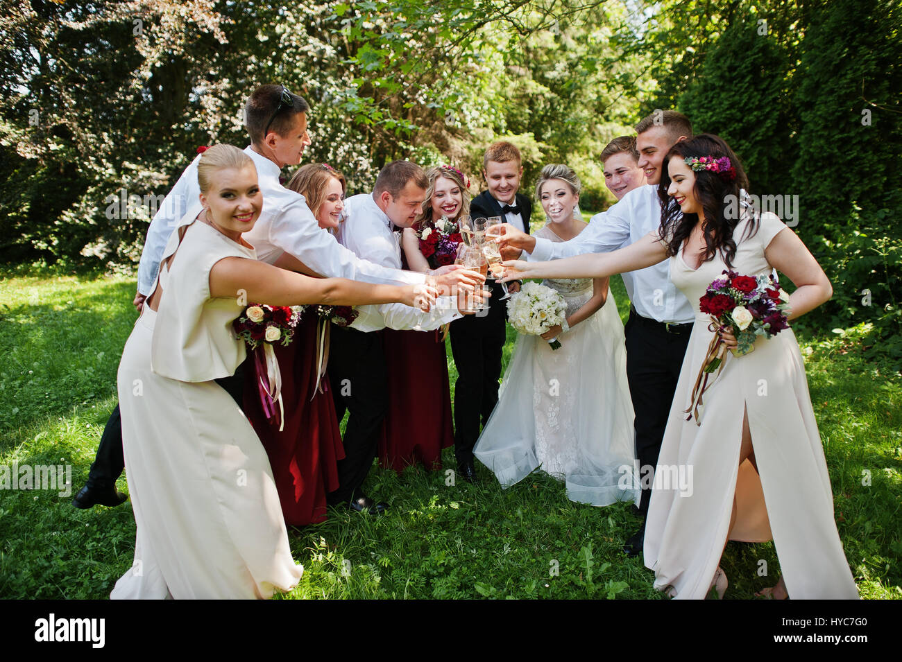 Elegance Wedding Couple With Bridesmaids And Best Mans Drinking